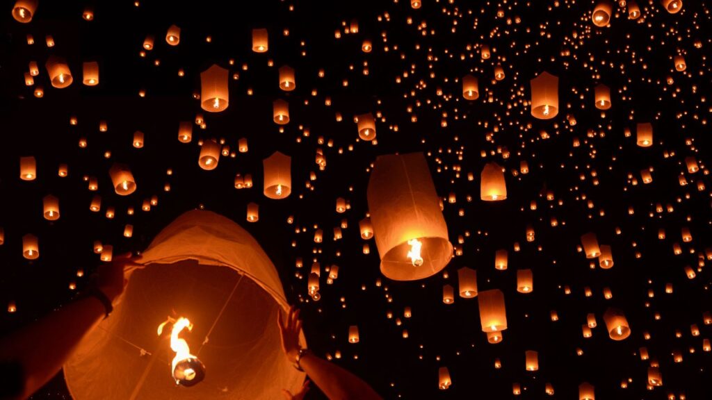 その中でもチェンマイはコムローイという和紙でてきたランタンを夜空に向けて飛ばします。数千個のランタンが一斉に空へ放たれる様子はすごく幻想的です。